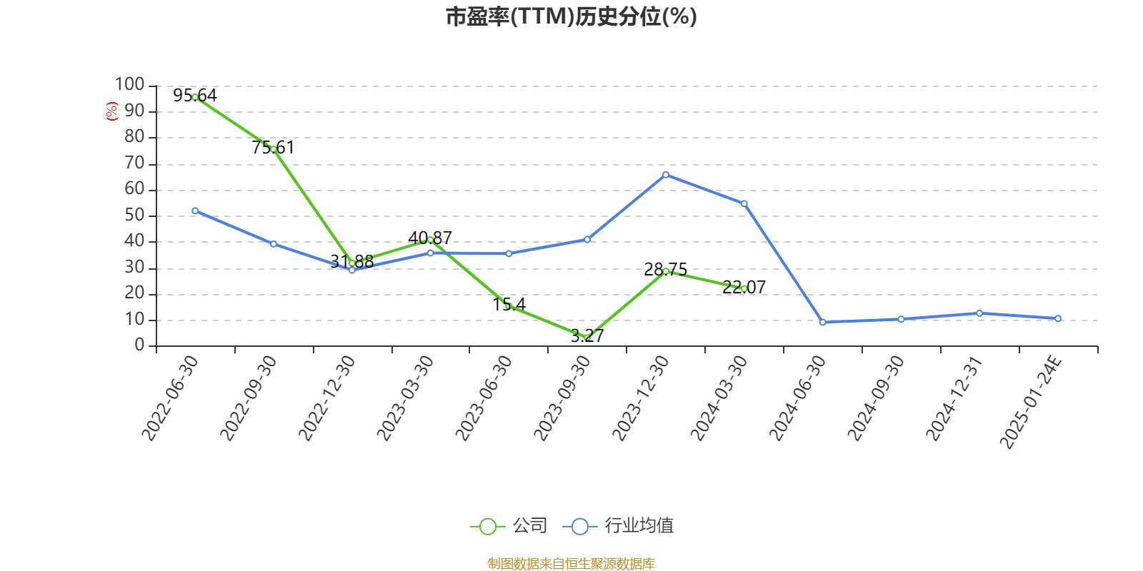 市盈率、市净率为负时,不显示当期分位数,会导致折线图中断。