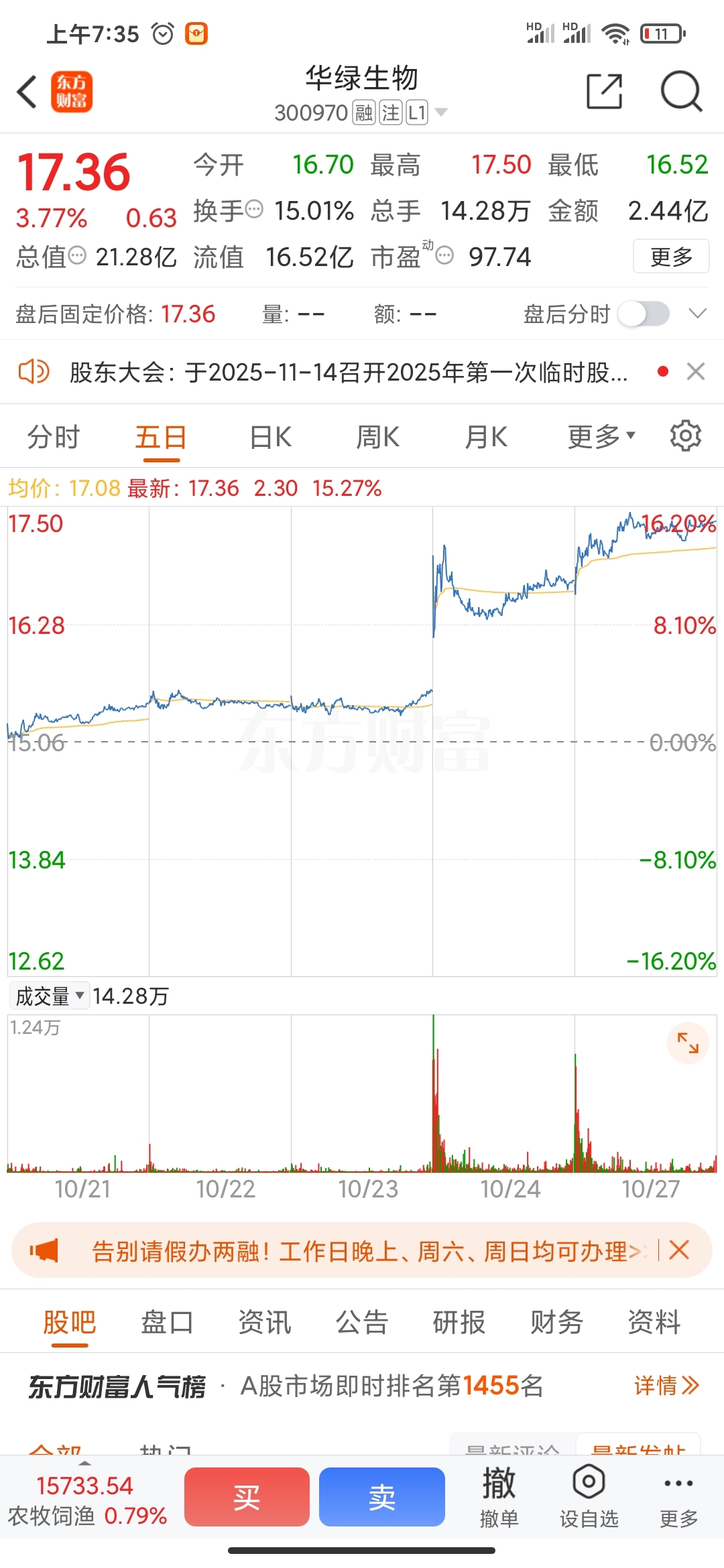 $华绿生物(SZ300970)$