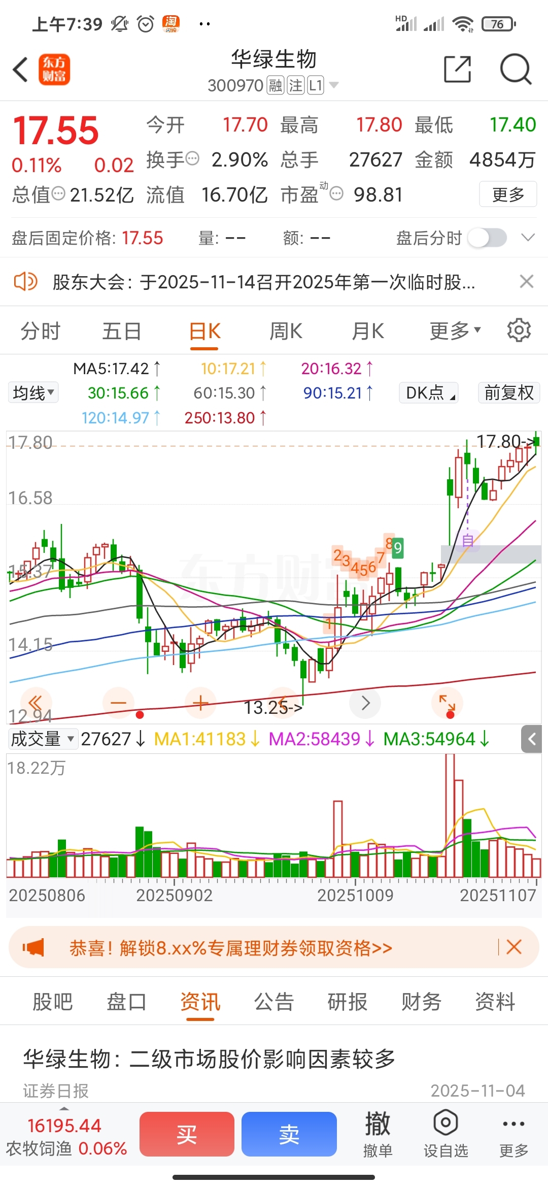 $华绿生物(SZ300970)$