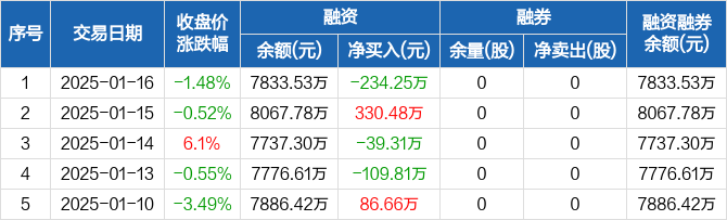 博亚精工:融资净偿还234.25万元,融资余额7833.53万元(01-16)