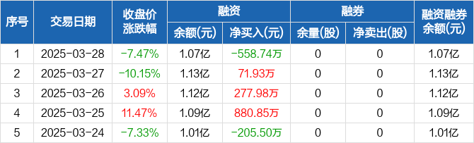 博亚精工:融资净偿还558.74万元,融资余额1.07亿元(03-28)