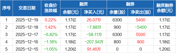 博亚精工:融资净买入26.07万元,融资余额1.17亿元(12-19)