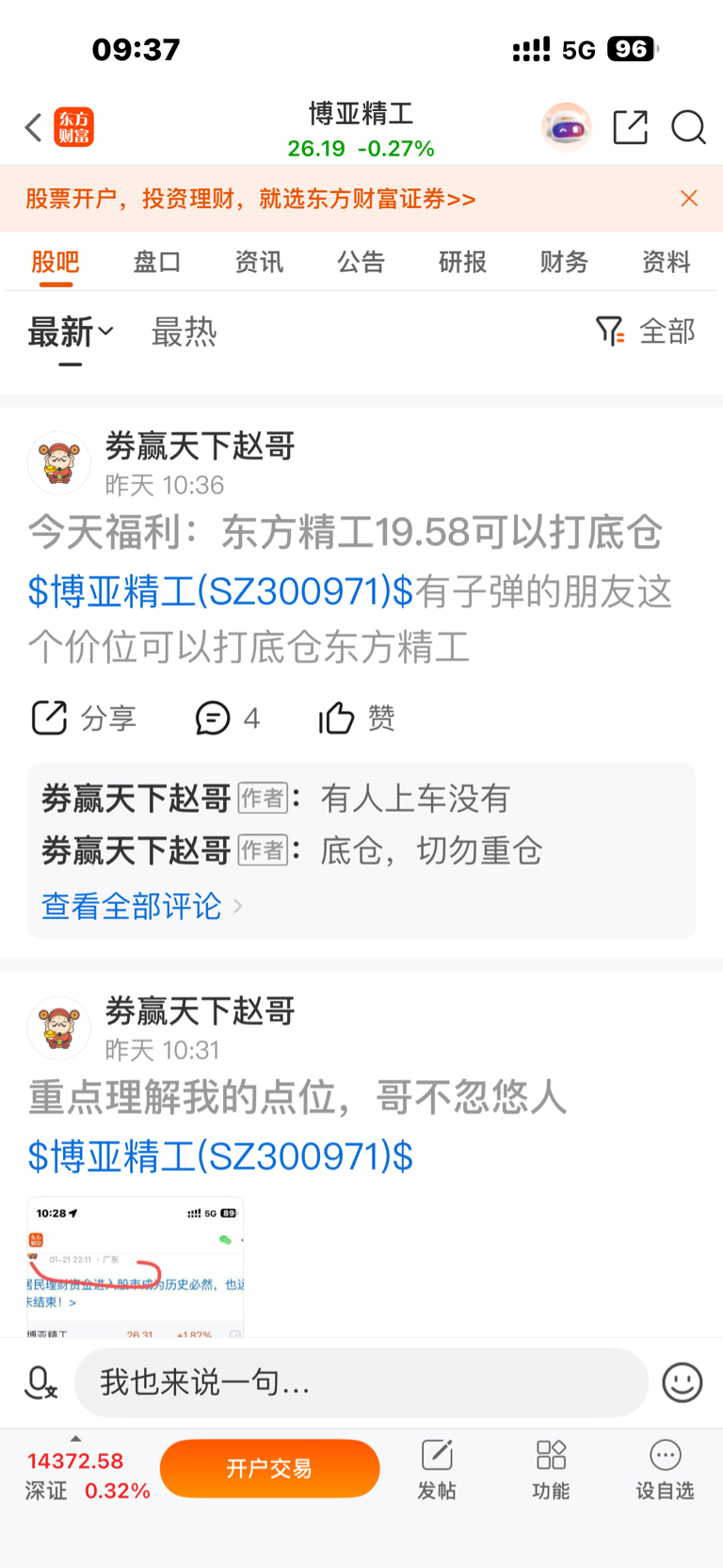 温馨提示: 1.根据《证券法》规定,禁止编造、传播虚假信息或者误导性信息,扰乱证券市场;2.用户在本社区发表的所有资料、言论等仅代表个人观点,与本网站立场无关,不对您构成任何投资建议。用户应基于自己的独立判断,自行决定证券投资并承担相应风险。《东方财富社区管理规定》