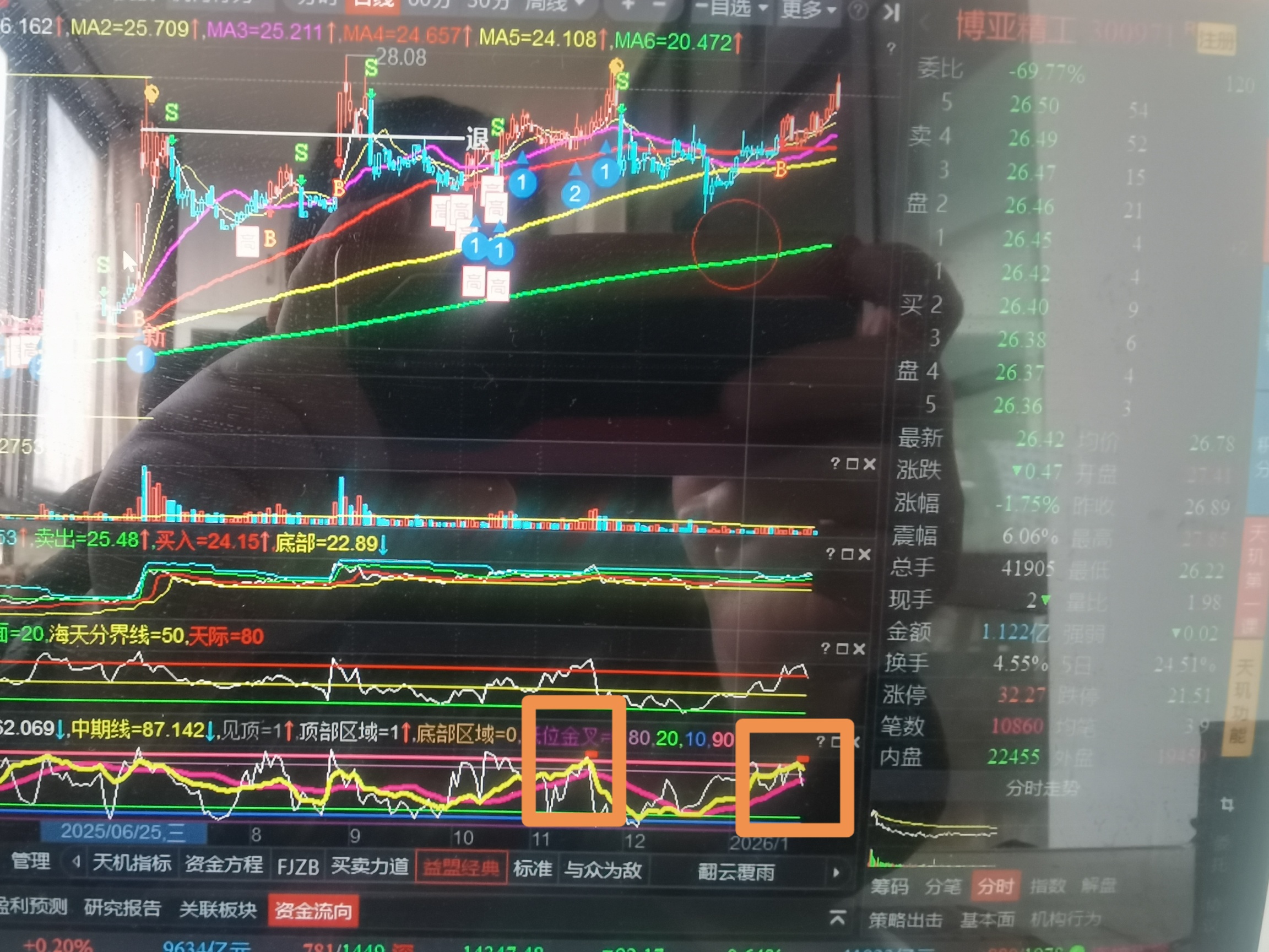 $博亚精工(SZ300971)$ 这是某知名软件的量化指标,短期顶部信号今天出来了,友情提示!!!