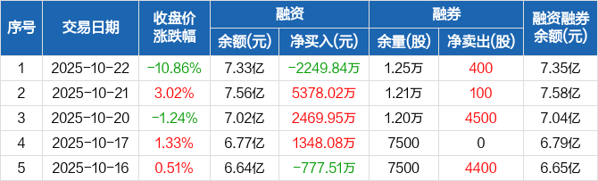 万辰集团:融资净偿还2249.84万元,融资余额7.33亿元(10-22)