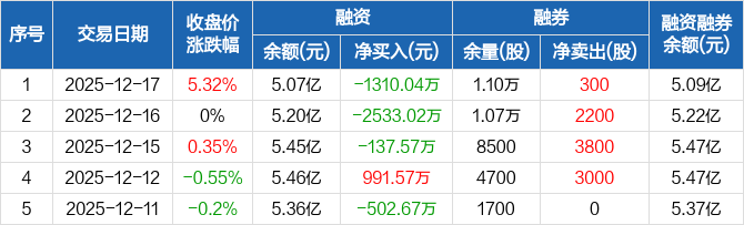 万辰集团:连续3日融资净偿还累计3980.64万元(12-17)