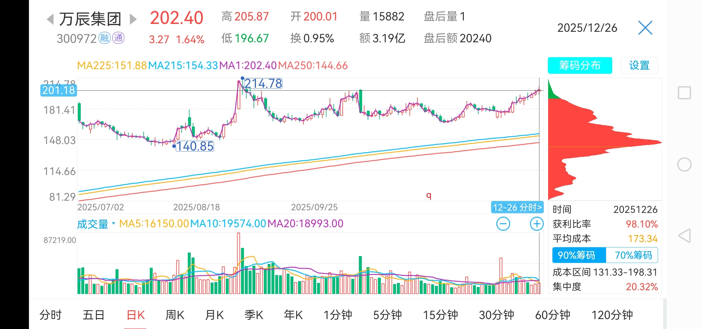 $万辰集团(SZ300972)$ 从筹码峰分布看,向上突破己成定局。随时可能涨停开启主升浪!