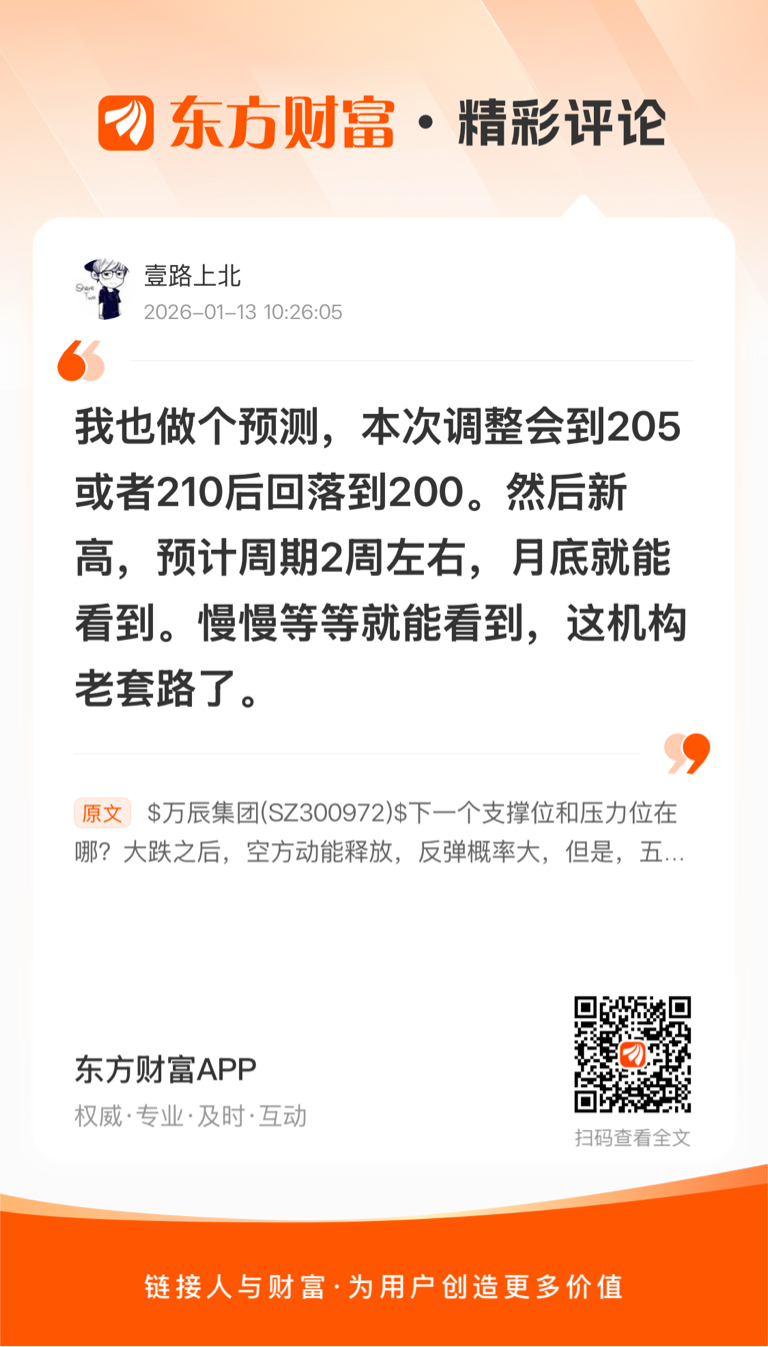 温馨提示: 1.根据《证券法》规定,禁止编造、传播虚假信息或者误导性信息,扰乱证券市场;2.用户在本社区发表的所有资料、言论等仅代表个人观点,与本网站立场无关,不对您构成任何投资建议。用户应基于自己的独立判断,自行决定证券投资并承担相应风险。《东方财富社区管理规定》