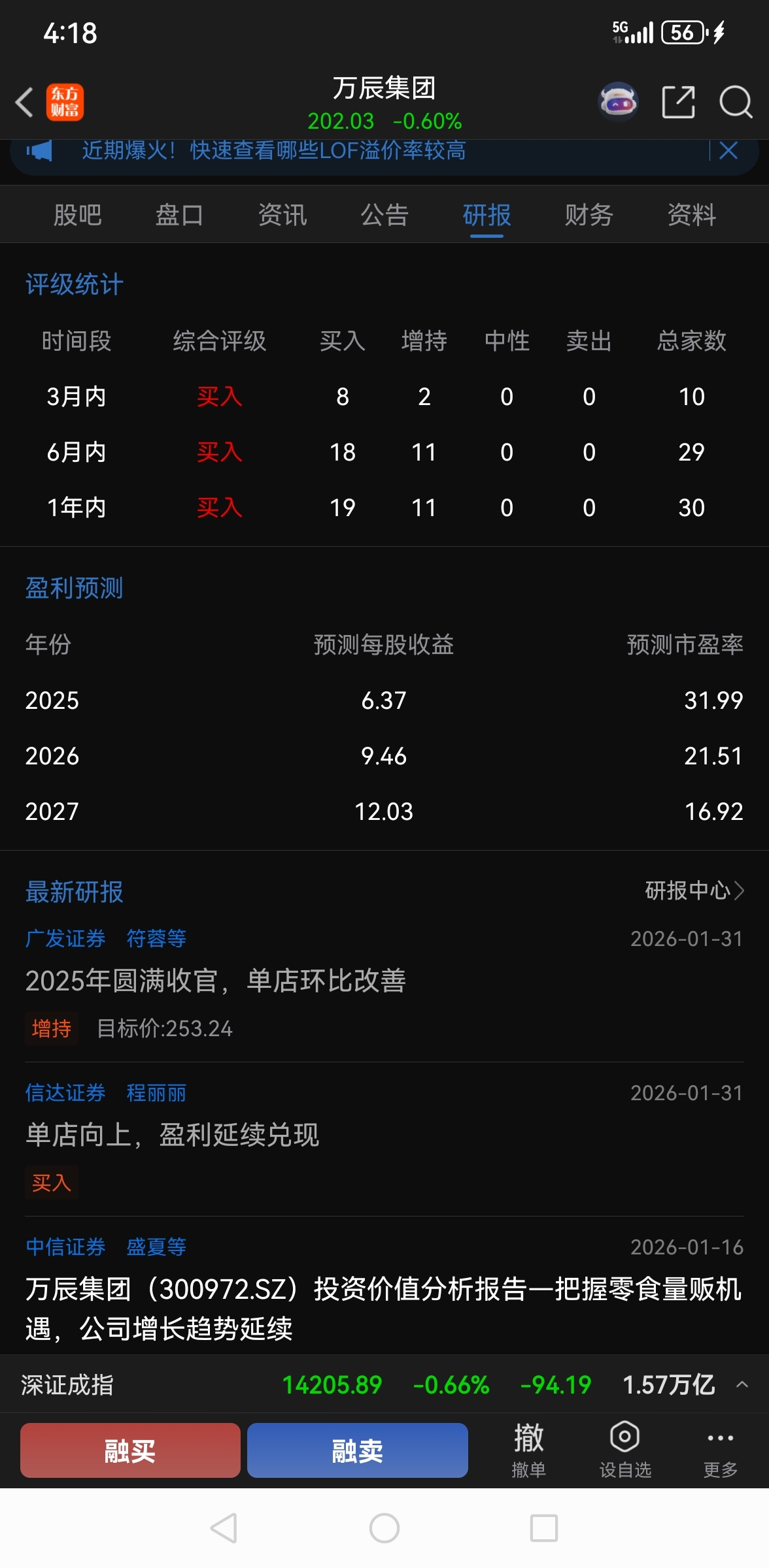 $万辰集团(SZ300972)$ 最近一年内有20家证券公司发了30份研报,推荐买入19家,推荐增持11家。预测2025年每股收益6.37元、2026年每股收益9.46元、2027年每股收益12.03元。目前万辰集团预告的每股收益为:6.52-7.41元。显然万辰集团的实际利润大大超出所券商研报的预期。而大股东减持这个特大利空刚好砸出了黄金坑,为公募基金入场提供了绝佳的入场机会!