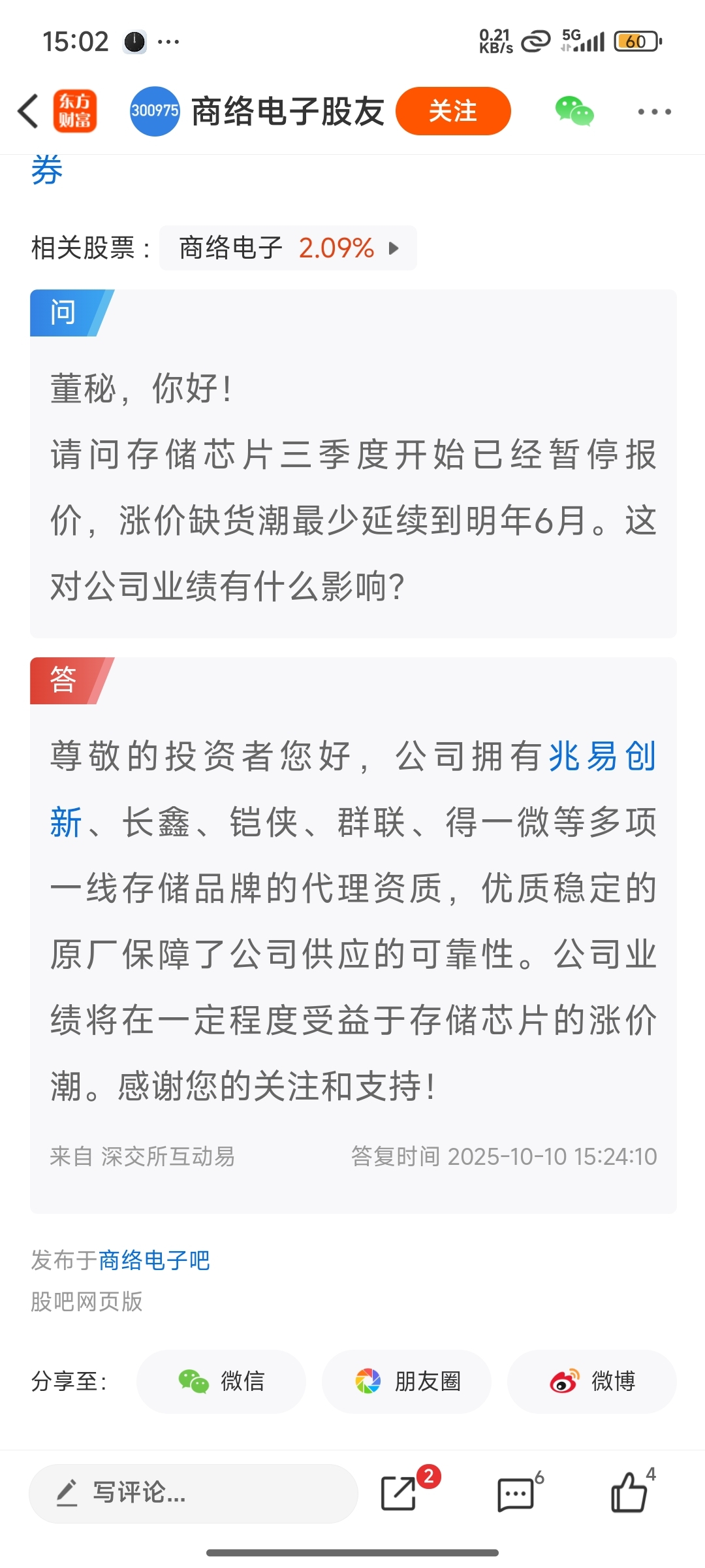 $商络电子(SZ300975)$ 在25年10月10曰互动易平台回复: