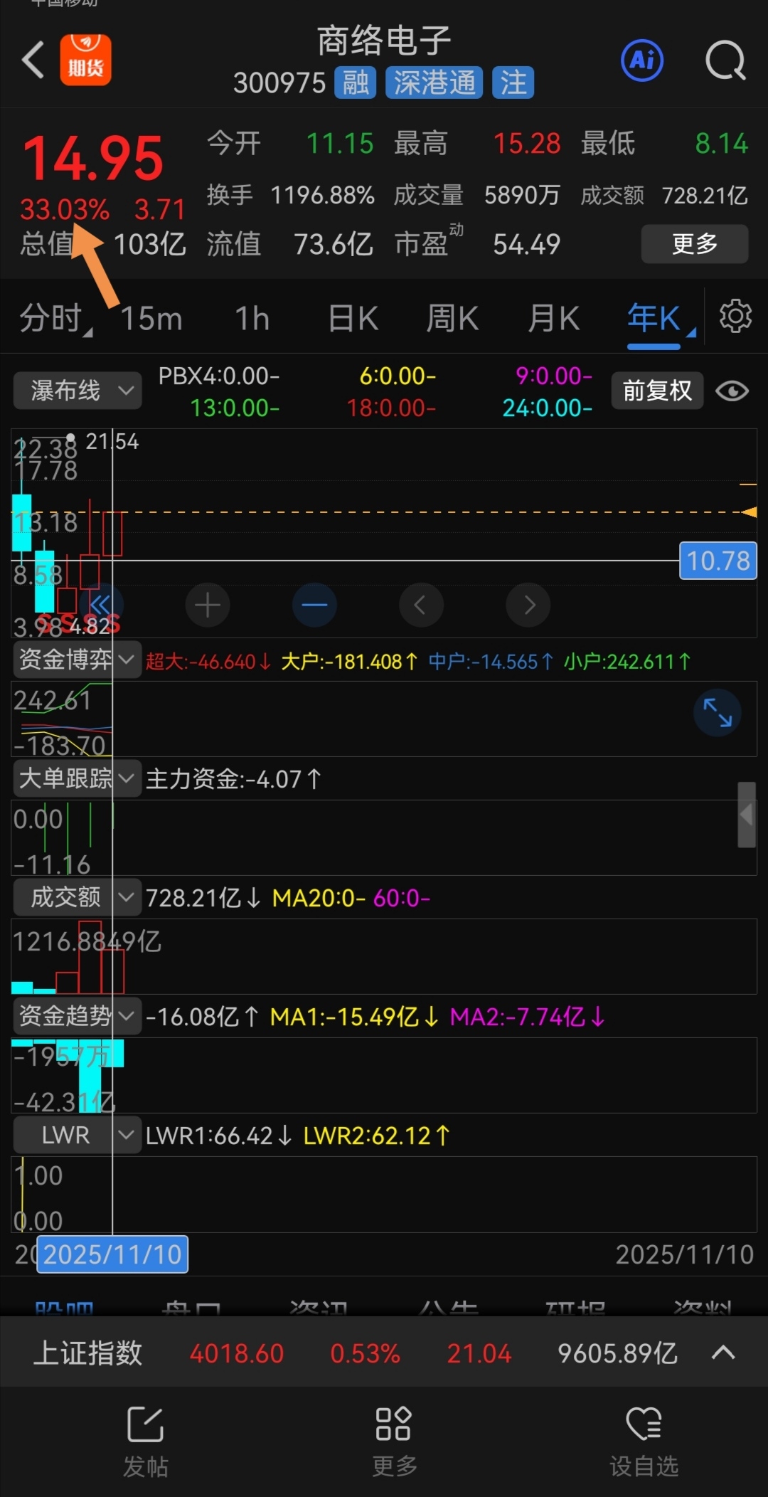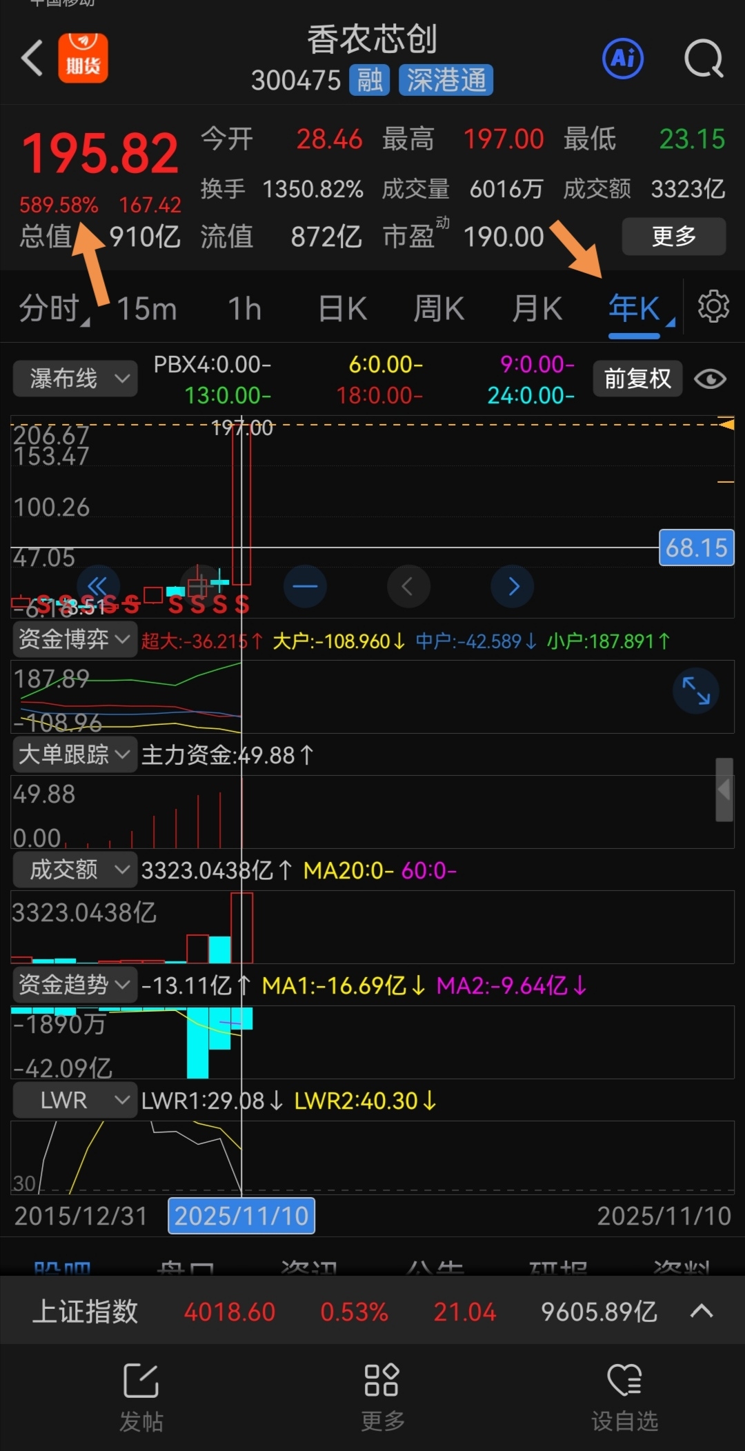 香农年K涨幅近600%,股比股商络得瘫,年K才涨33%