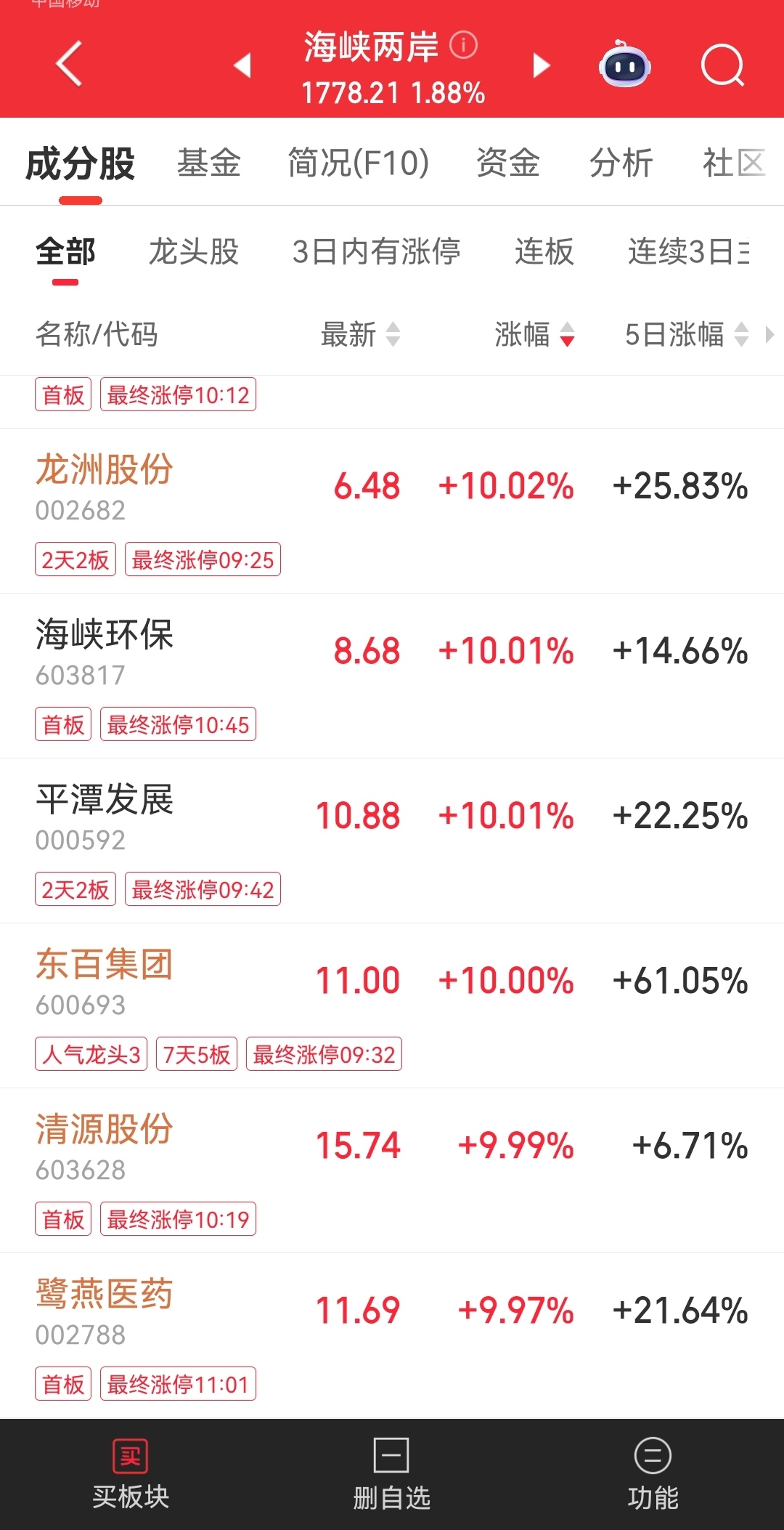 昨天104只涨停,现在78只涨停。商络又在海峡两岸板块垫底