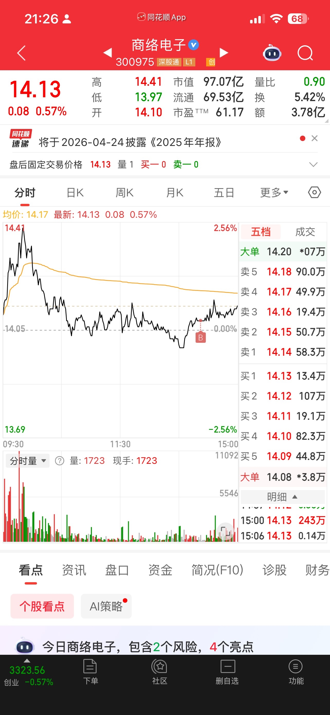 $商络电子(SZ300975)$ 今日入,明天看涨。