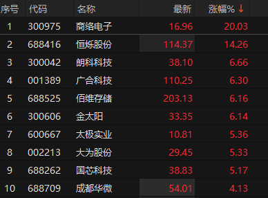 存储芯片概念震荡拉升 商络电子20cm涨停