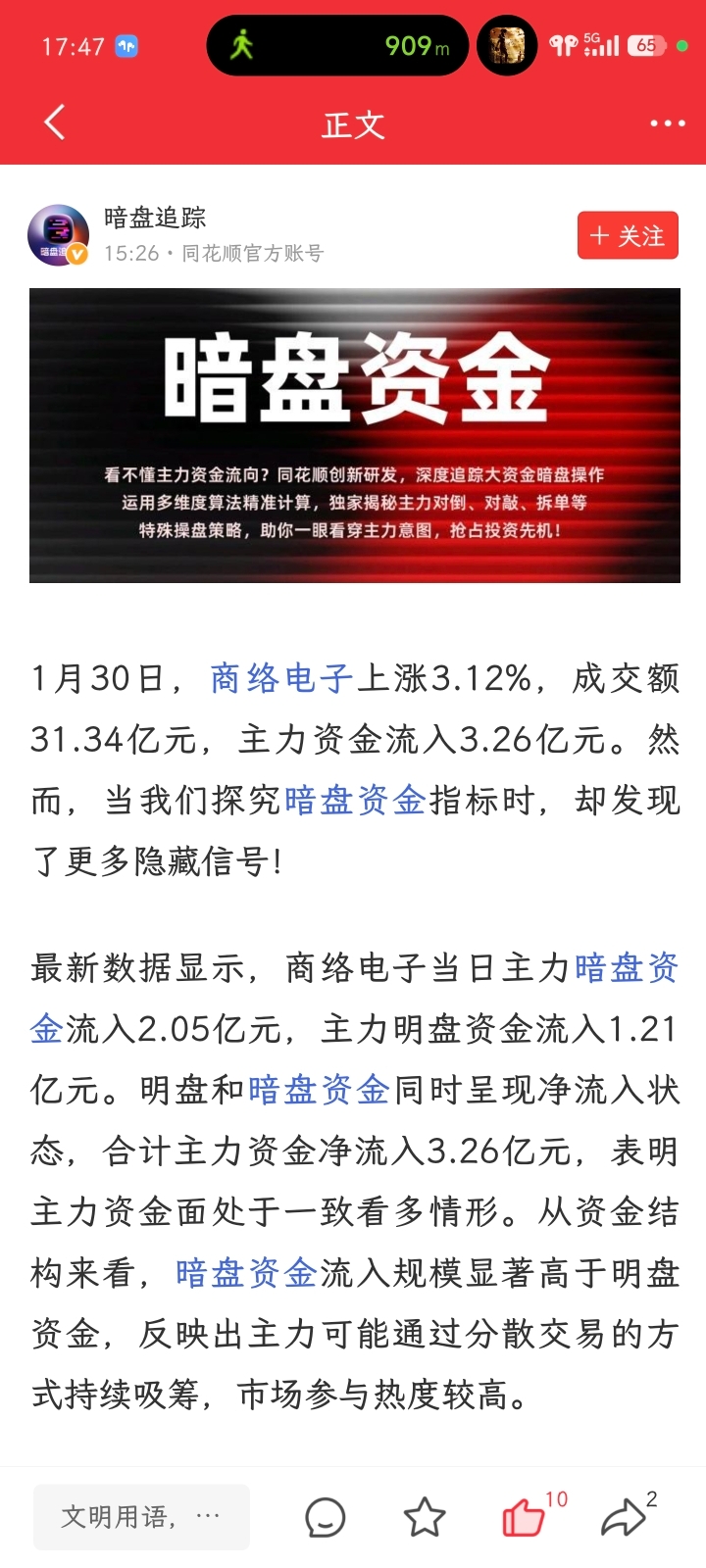 $商络电子(SZ300975)$ 暗盘流入2亿多