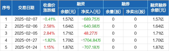 达瑞电子:融资净偿还689.75万元,融资余额1.57亿元(02-07)