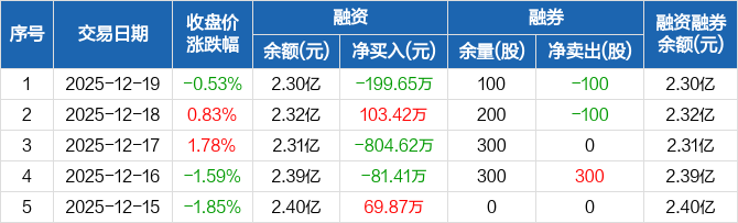 达瑞电子:融资净偿还199.65万元,融资余额2.3亿元(12-19)