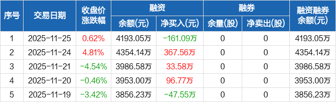 深圳瑞捷:融资净偿还161.09万元,融资余额4193.05万元(11-25)