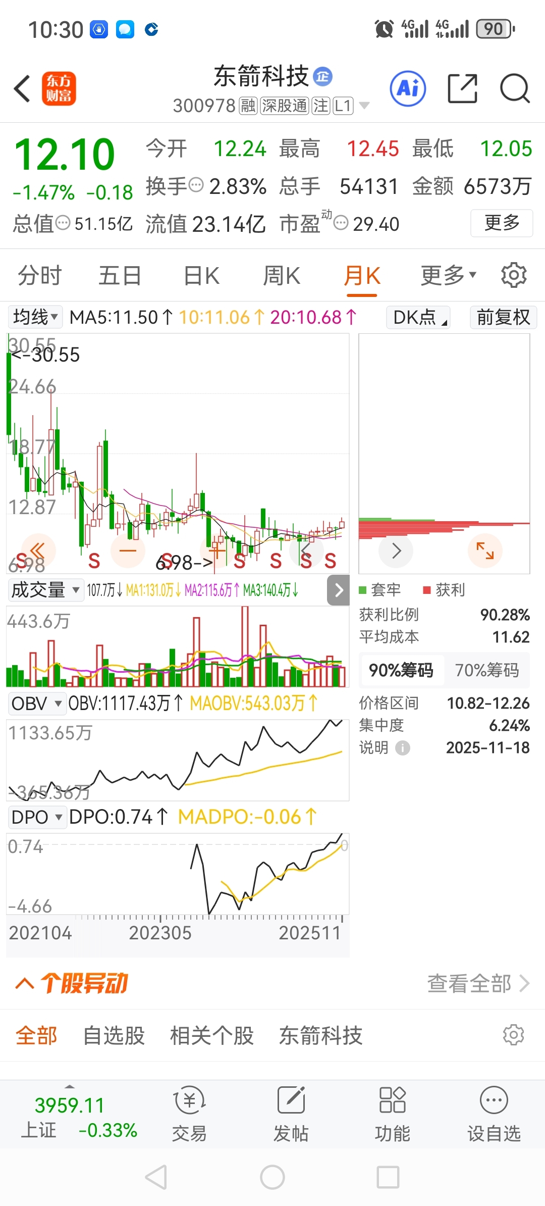 $东箭科技(SZ300978)$ 然后站在宏观的角度,历史的角度来看一只股票的走势。那就研究一些月线。