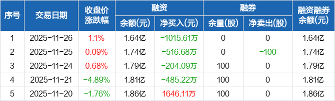 东箭科技:融资净偿还1015.61万元,创近一年新高(11-26)
