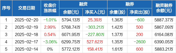 华利集团:融资净买入25.39万元,融资余额5794.13万元(02-20)