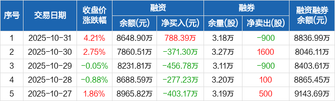 华利集团:融资净买入788.39万元,融资余额8648.9万元(10-31)