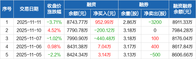 华利集团:融资净买入952.99万元,融资余额8743.77万元(11-11)
