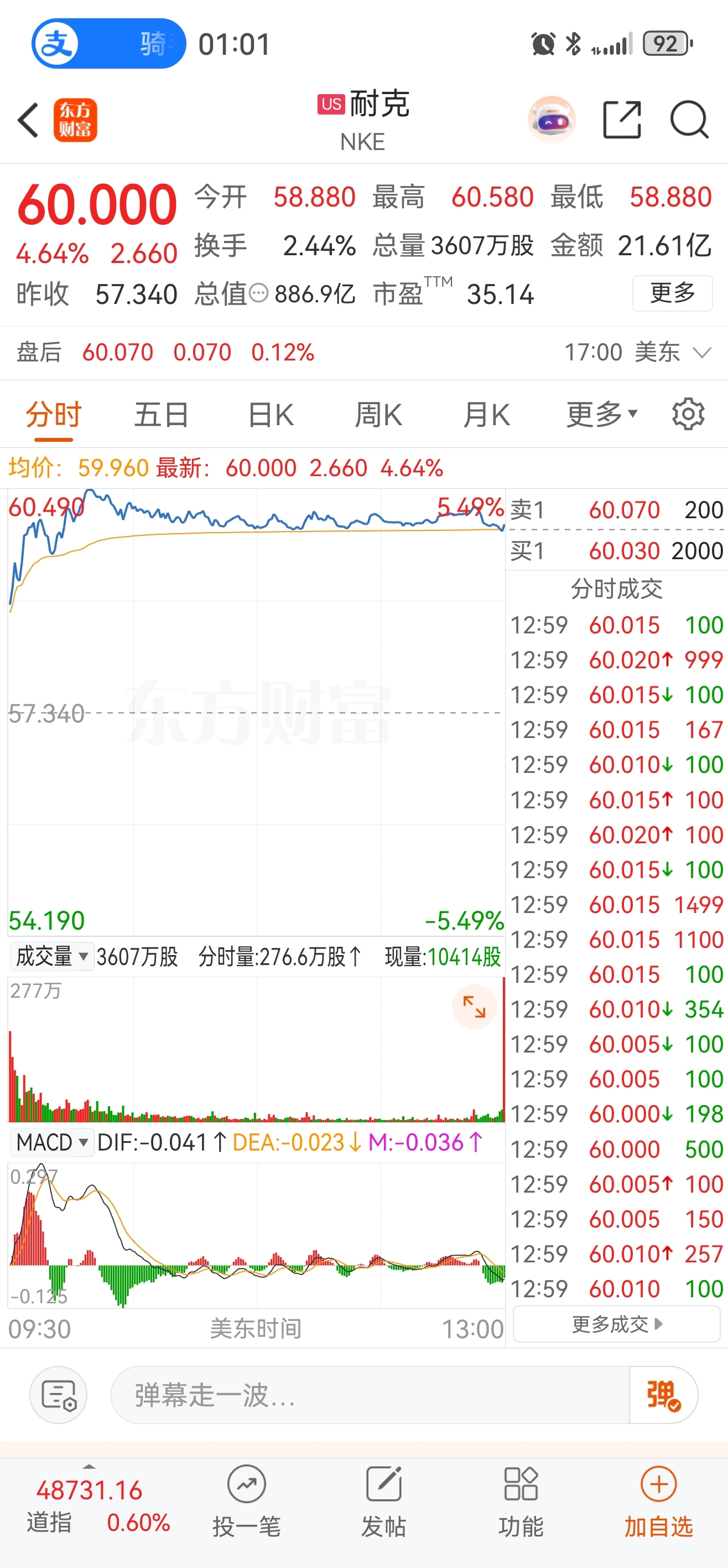 耐克被苹果CEO增持,昨夜已经触底反弹大涨,相信你的反弹也不远了