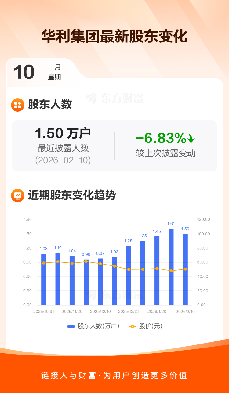 华利集团:截至2月10日最新股东户数1.50万户,较上期减少6.83%