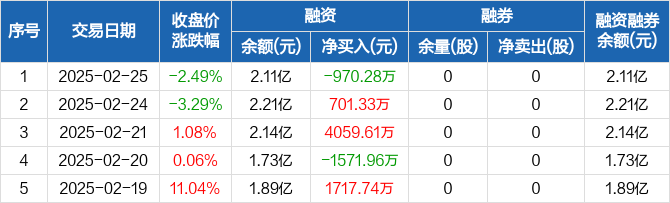 祥源新材:融资净偿还970.28万元,融资余额2.11亿元(02-25)