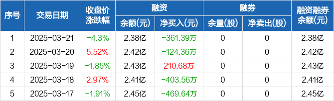 祥源新材:融资净偿还361.39万元,融资余额2.38亿元(03-21)