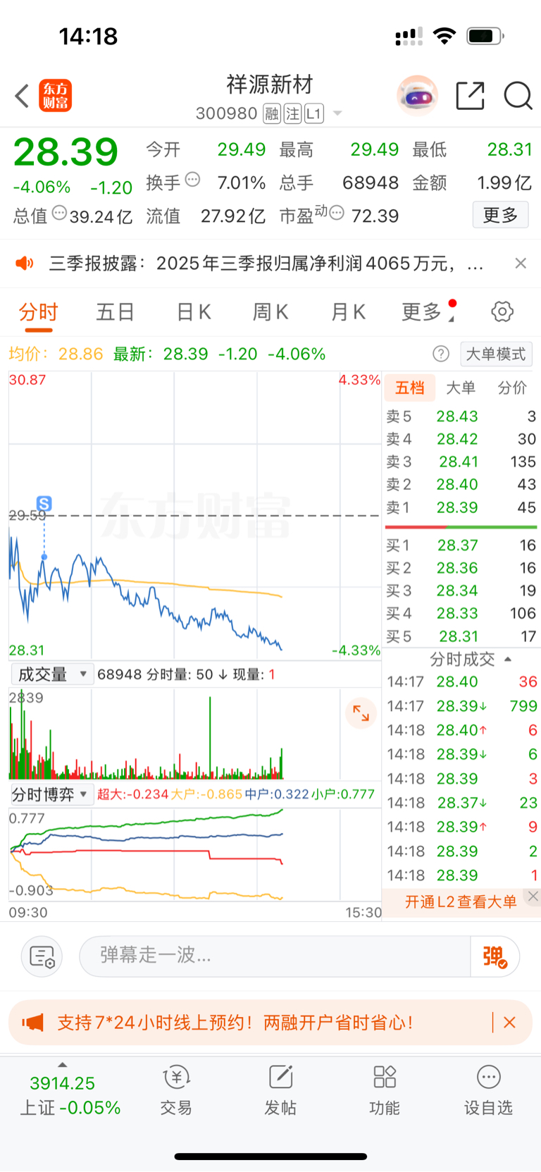 $祥源新材(SZ300980)$ 还好上午跑得快,吓人啊