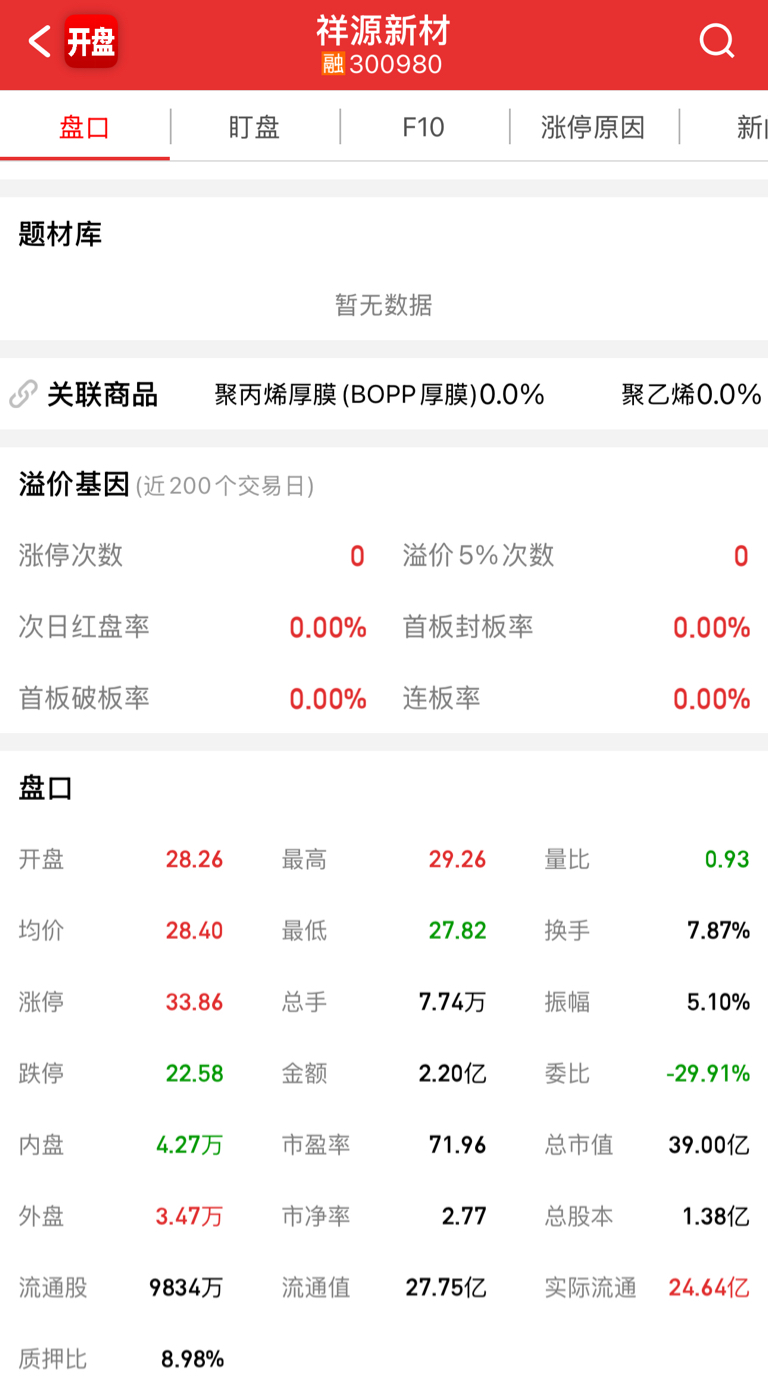 $祥源新材(SZ300980)$ 就说这什么玩意儿,上市以来从来没涨停过,是基因里自带的弱!