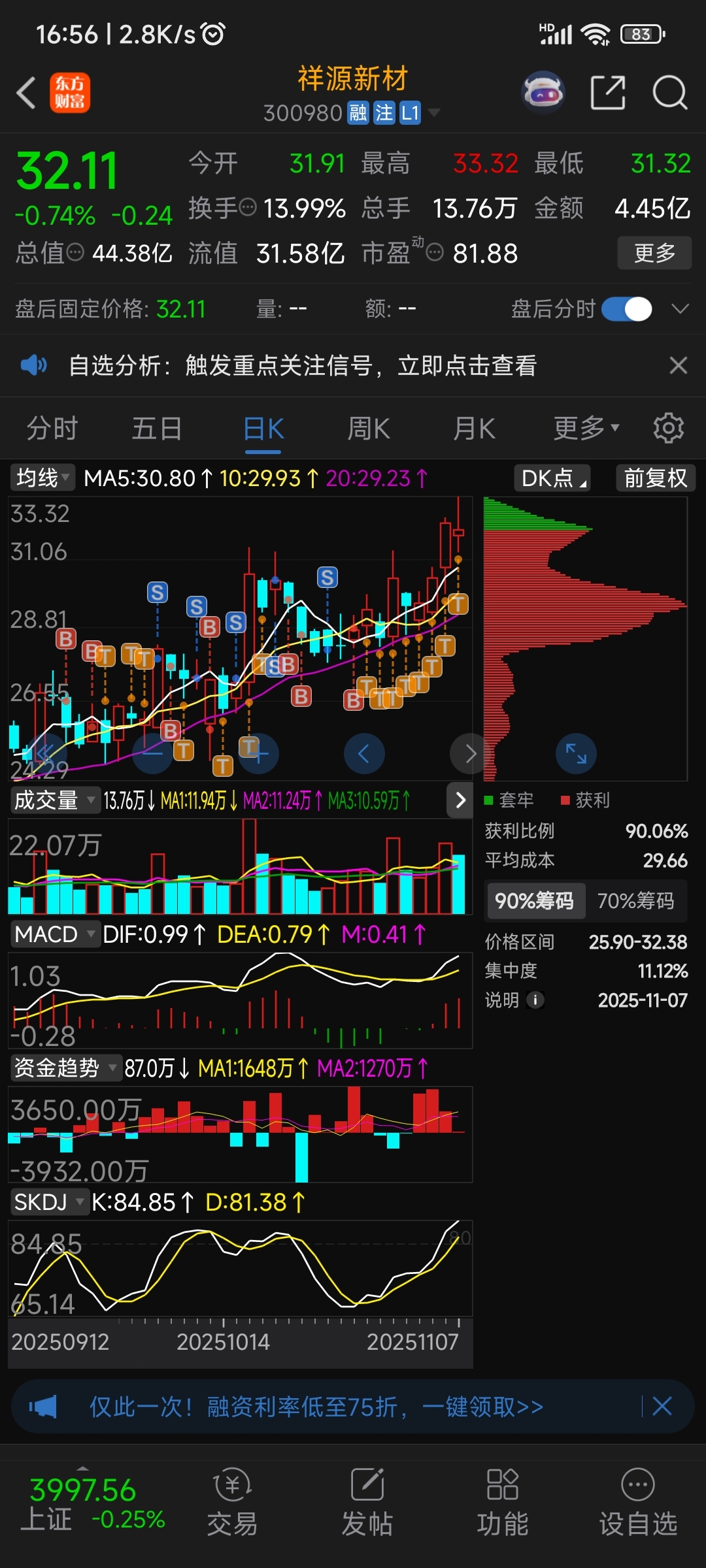 $祥源新材(SZ300980)$ 先订个小目标成本降到0元以下。生活不只是诗和远方,还有炒股同主力斗智斗勇