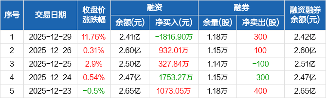 祥源新材:融资净偿还1816.9万元,融资余额2.41亿元(12-29)