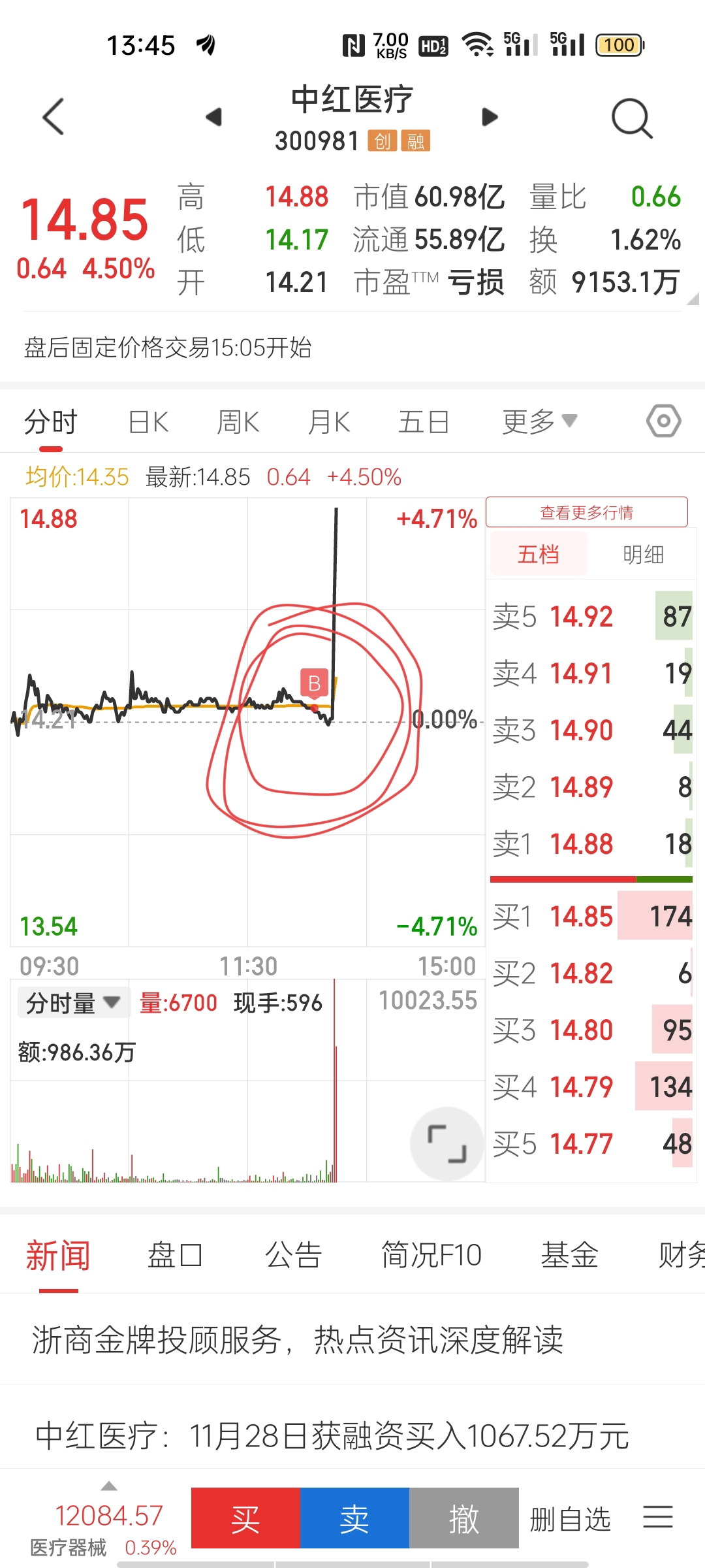 $中红医疗(SZ300981)$ 在 16.60 上方不买只看热闹或直接删除也可,坚持买阴不买阳, 在 14.63 有一定支撑,不有效跌破就买,跌破就不买,这是纪律坚决执行。宁可错过也不犯错!!!它在主图最上方显示上方的阻力位依次有 15.58 16.60 17.42 18.56 20.53 22.17 等,哪里冲不过就在哪里出!只希望他在回踩 不跌破时买进,跌破千万不要买!这是纪律!有资金进去的不怕他跌,怕他不跌,跌才有机会,坚持不追涨原则。天天有股选何必去追涨呢。如果跌破 则可能向下到 等等下面的就不说了,不严格扏行止损纪律就同样可以向下计算出万丈深渊!任何指标不可能单独起作用,维一有用的是(坚持止盈止损:)这是血的教训!!!就是说我计算的某个点位明显冲不过去就要止盈!某个点位明显支撑不住就要止损!但是这点非常难做到非常难执行,我自己也好多次做不到,教训深刻[流泪][流泪][流泪] 所选个股都是只做两叁天,原则是次日不涨停就抛换一个做,超级短线! 现在有个做得很红火选股器广告,说如果本金10万每天赚1%,250个交易日可以做到400万元,这是广告,广告没有一个是真的因为实盘做不到每天赚1%.但要树立超级短线的理念。我同样做不到但升级后的选股器超级短线成功率相当高了! 25年元月1号起选股业绩是1号选的海德控制7↗连板,9号选的金奥博7连板,9号选的苏豪弘业6连板,27号再次选的杭钢股份开年七连板,2月5号选的浙数文化六连板了,6号选的新时达7号可买随后停牌复牌后将近7个一字板。3月14号选的中科云网和皇氏集团贝因美及金发拉比4个板,贝因美3连板了。由于修改方案专门选小阴小阳的很久没选出来涨停板的了,4月24号选的宇晶科技25号阴线开盘随后板了,5月8号收盘后选的河化股份9号平开随后涨停。6月11号上午10点钟选的天安新材当时才涨4个点,随后不久涨停,6月16号上午选的创新医疗当天才涨4点多17号涨停!19号晚上选的强力新材20号涨20%!6月25号中午12点多钟选的华媒控股当时没涨次日午后涨停! 122个交易日76个10%。理论上7个10%就翻倍!有些连板股次日不给机会上车但说明我的选股方案非常好!我这个股市神枪手值得关注! 优化升级后的人工智能选股大数据模型选出来的,多数是小阴小阳的这种涨的慢但安全要有耐心,有些是已经涨停板了的当天买不到,只能等次日回调不跌破我计算的某个关键点位时买入,跌破了的千万不要买!这是纪律。注意买后有赚就可以,赚了就跑,快进快出,模拟手动量化交易。 这个免费选股器隔三差五总能选出连板飚升股,效果非常好!虽然还是不能百分百准确,但网上能够经得起公开验证的不多见,比网上任何高价昂贵的软件强百倍,而且我这个是免费。可以查查我24年8月19号收盘后选的常山北明的帖子,从6.23最高涨到11月1号39.88翻了5.4倍!其他连板飚升股太多了懒得统计!网上那些大w虽然粉丝多但只讲板块和指数,那是放空炮!没有实际意义,其实际操作水平经不起个股的验证!买什么买哪个我直接点对点精准出击。不要浪费时间看大w的。 总是有些没有修养的喷子喷人,我会拉黑永久屏蔽他,这些点位对已经持有的人有很大提示参考价值。 我画的这些彩色横线是我自己研究了多年才得出的,每根横线处股价有效冲过了就是支撑,冲不过就是阻力,是我的独自研究的,很准的。请仔细看照片,也请你自己同时在你自己电脑行情软件上我说的那几个价位上画横线,可以看见已经走过来的历史很清楚地展示出来了支撑和压力,未来也同样,所以要重视这些彩色横线所指价位或者主图最上方标注的价位!不要听那些大W大砖家的!不要听他们耍嘴皮子!更不要看他们耍笔杆子! 超级短线票不要指望一步就涨好几个价位,有壹两个价位就够了,通常赚1个价位即1个台阶就走,当然能碰到连板股更好,但不强求,坚定只做超级短线理念!赚了钱就跑, 选出1个股票还没有买就先告诉你哪几个价位是阻力,在哪根彩色横线冲不过就要抛出,这是全市场人 士没有的!任何股评师无法企及不是这个档次,不要看均线金叉才买入出金叉后就已经涨上来好几个点了,也不要等死叉才卖出,死叉后就已经跌了好几个点少赚几个点了,只要看我计算的点位,哪里冲不过就在哪里抛,就抛在了高位! 智能选股大数据模型就是程序化选股,程序是固定的相同的,所以你们看到我的文章只有股票名称和价格不一样。 所选个股还做不到百分百成功,还需要各位再全方位精选,我的只是参考 。 长文里有些话是我以前失败教训的总结,要重视!并且提示关键点位后难点在执行力,比如某个点位明显冲不过或撑不起来一定要抛的时候,却犹豫不决错失良机。所以要磨练执行力! 欢迎关注不关注就不能及时了解我的新选个股动态。粉丝多少对我无所谓,如果不关注,对你可能少了一个提示你抓发财机会的朋友。对你可能少了一个提请你抓飚涨个股的朋友,我这个股市义工朋友值得信赖!!! 如果赞成我对某个股的观点请在(评论)栏发个笑脸或花朵,不要(点赞)!!!因为(点赞)不能更新帖子在股吧的排序和顶帖,犹其是已经持有的人多顶帖是在为你自己拉人气。 我的股友不是几百几千个,而是几万个,他们都是经历过返复对我考察后才接受我的,几万个聪明绝顶铁粉的信任,我必须诚心相待才对得起朋友!尽量尽力做好股市义工!是你们的信任让我的努力变得更有意义!让我们一起在股市共创辉煌共同发财!!!