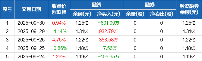 苏文电能:融资净偿还601.09万元,融资余额1.25亿元(09-30)