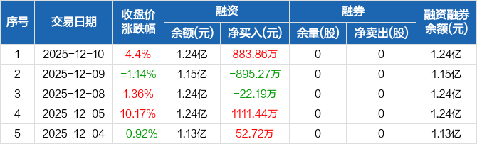 苏文电能:融资净买入883.86万元,融资余额1.24亿元(12-10)