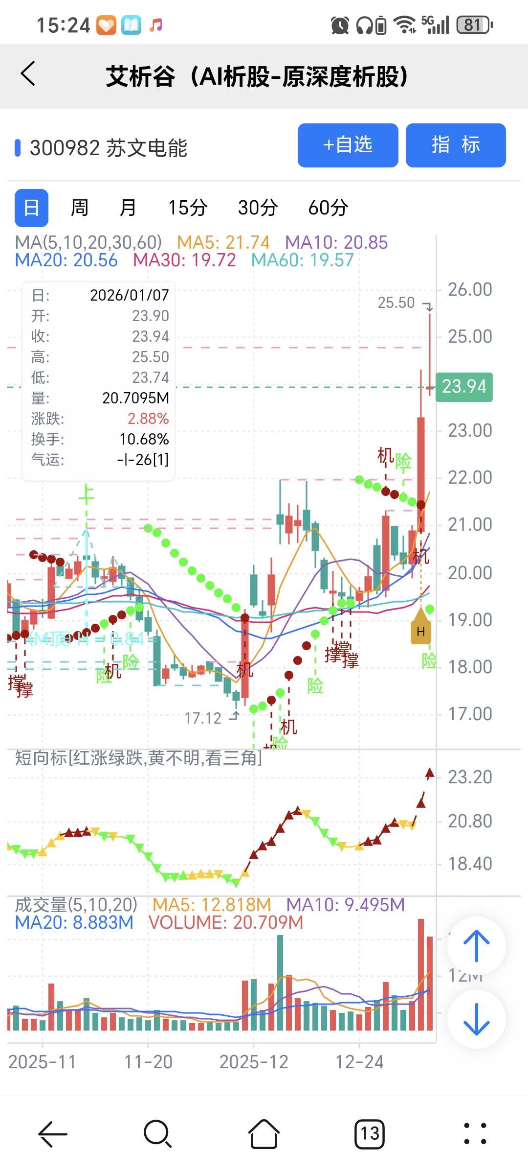 AI模型选股,量化指标识别关键点,简单技术分析确定买卖点,结合量化和人工综合运用,才能有优势。 苏文电能