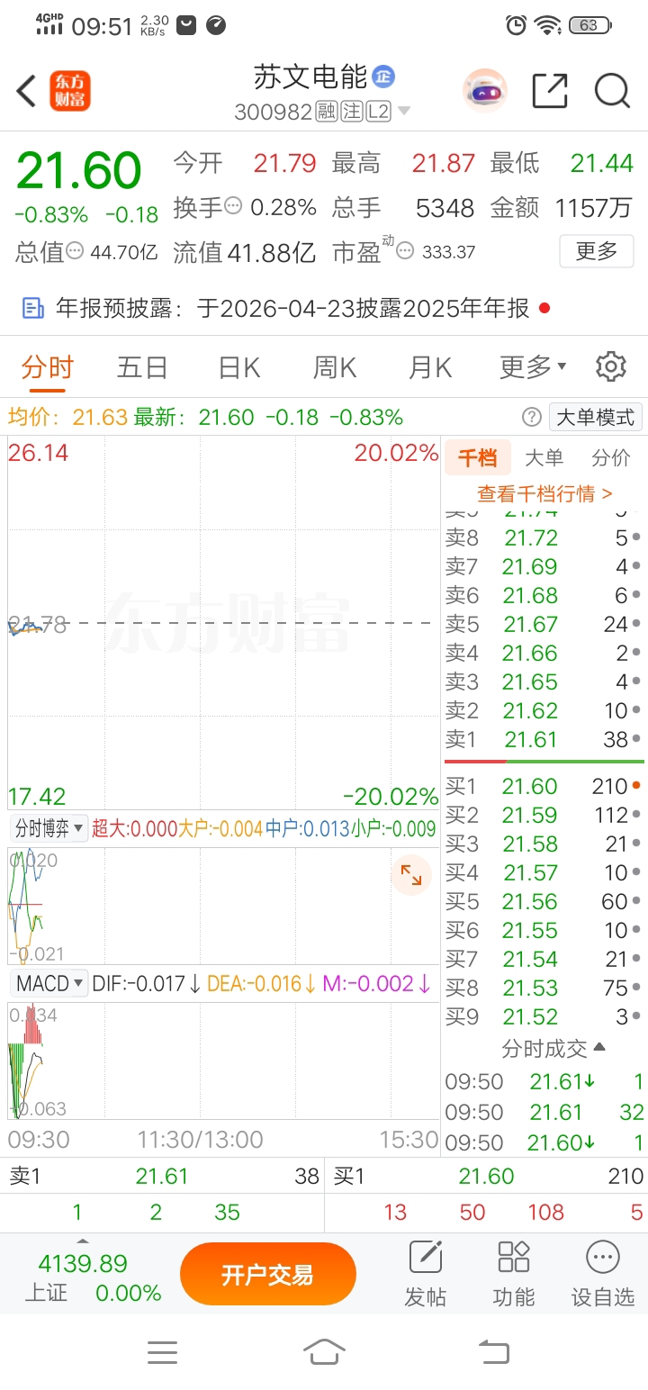 $苏文电能(SZ300982)$ 行情照旧,跌跌不止,看分时博弈大户人家依旧抛出比买入多多