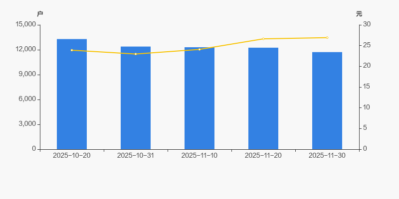自2025年10月20日以来,公司股东户数连续4期下降,截至目前减幅为11.84%。2025年10月20日至2025年11月30日区间股价上涨12.68%。