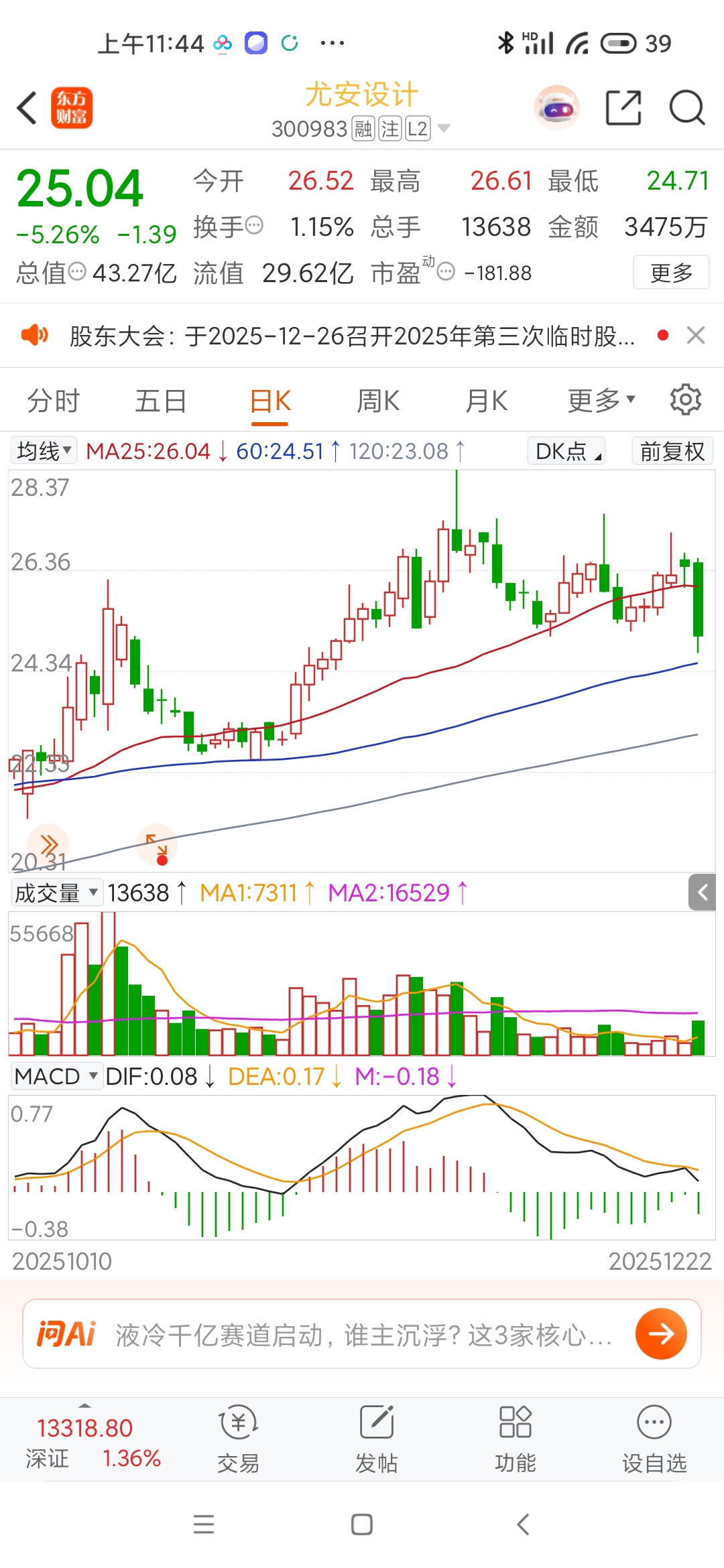 $尤安设计(SZ300983)$ 高位放量大跌小散都快逃命吧!这是最基本的技术了