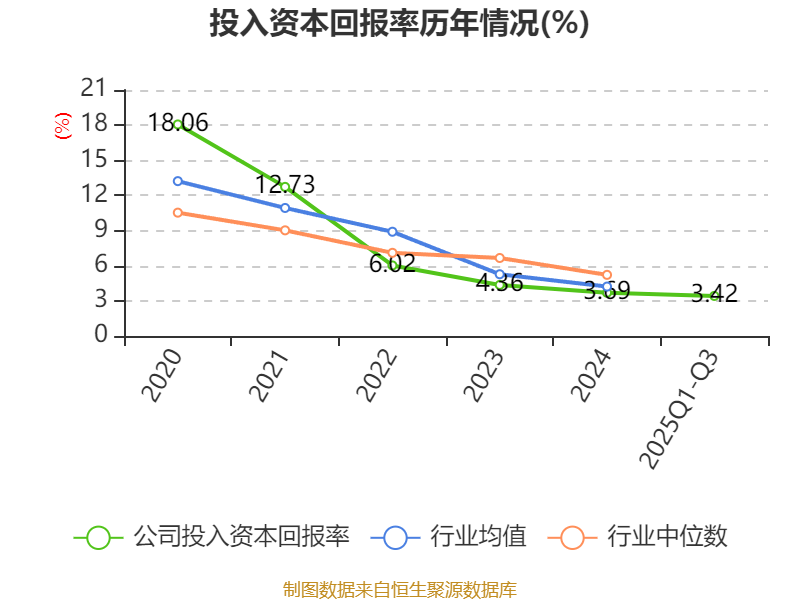 盈利能力方面, 2025年前三季度公司加权平均净资产收益率为3.7%,同比上升0.65个百分点。公司2025年前三季度投入资本回报率为3.42%,较上年同期上升0.6个百分点。