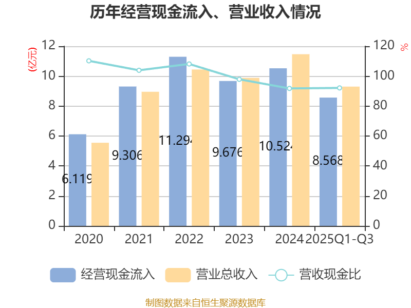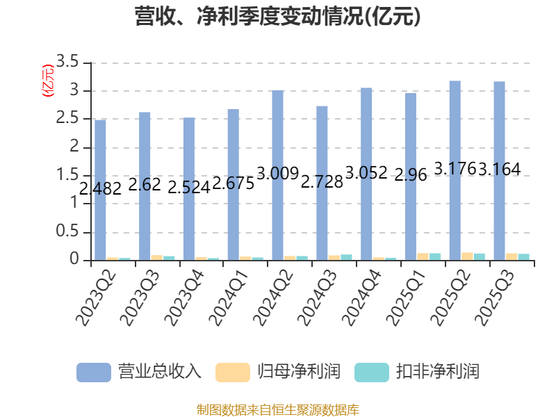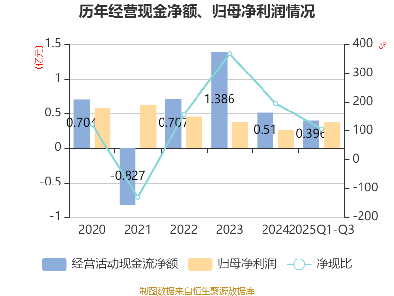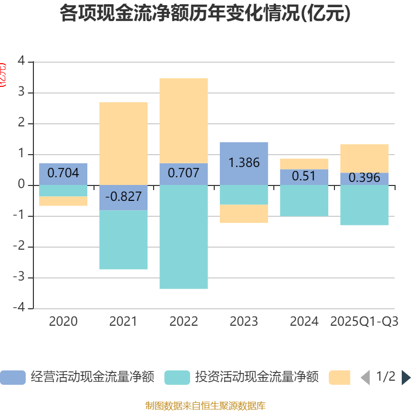 2025年前三季度,公司经营活动现金流净额为3957.84万元,同比增长106.2%;筹资活动现金流净额9253.82万元,同比增加4268.68万元;投资活动现金流净额-1.31亿元,上年同期为-6146.88万元。