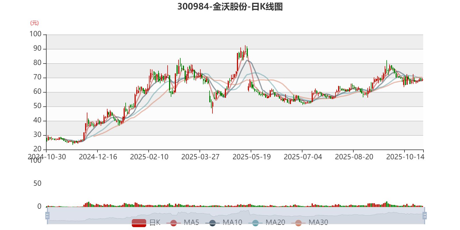 以10月29日收盘价计算,金沃股份目前市盈率(TTM)约为200.53倍,市净率(LF)约8.14倍,市销率(TTM)约6.84倍。