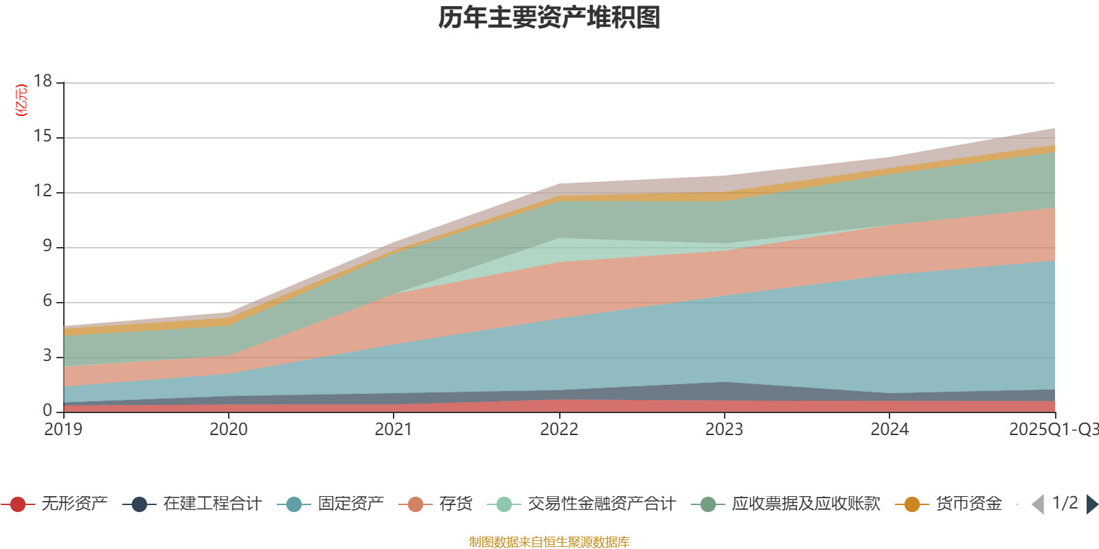 资产重大变化方面,截至2025年三季度末,公司固定资产较上年末增加8.63%,占公司总资产比重下降1.14个百分点;在建工程合计较上年末增加52.21%,占公司总资产比重上升1.11个百分点;存货较上年末增加7.03%,占公司总资产比重下降0.76个百分点;长期股权投资较上年末增加1022.84%,占公司总资产比重上升0.62个百分点。