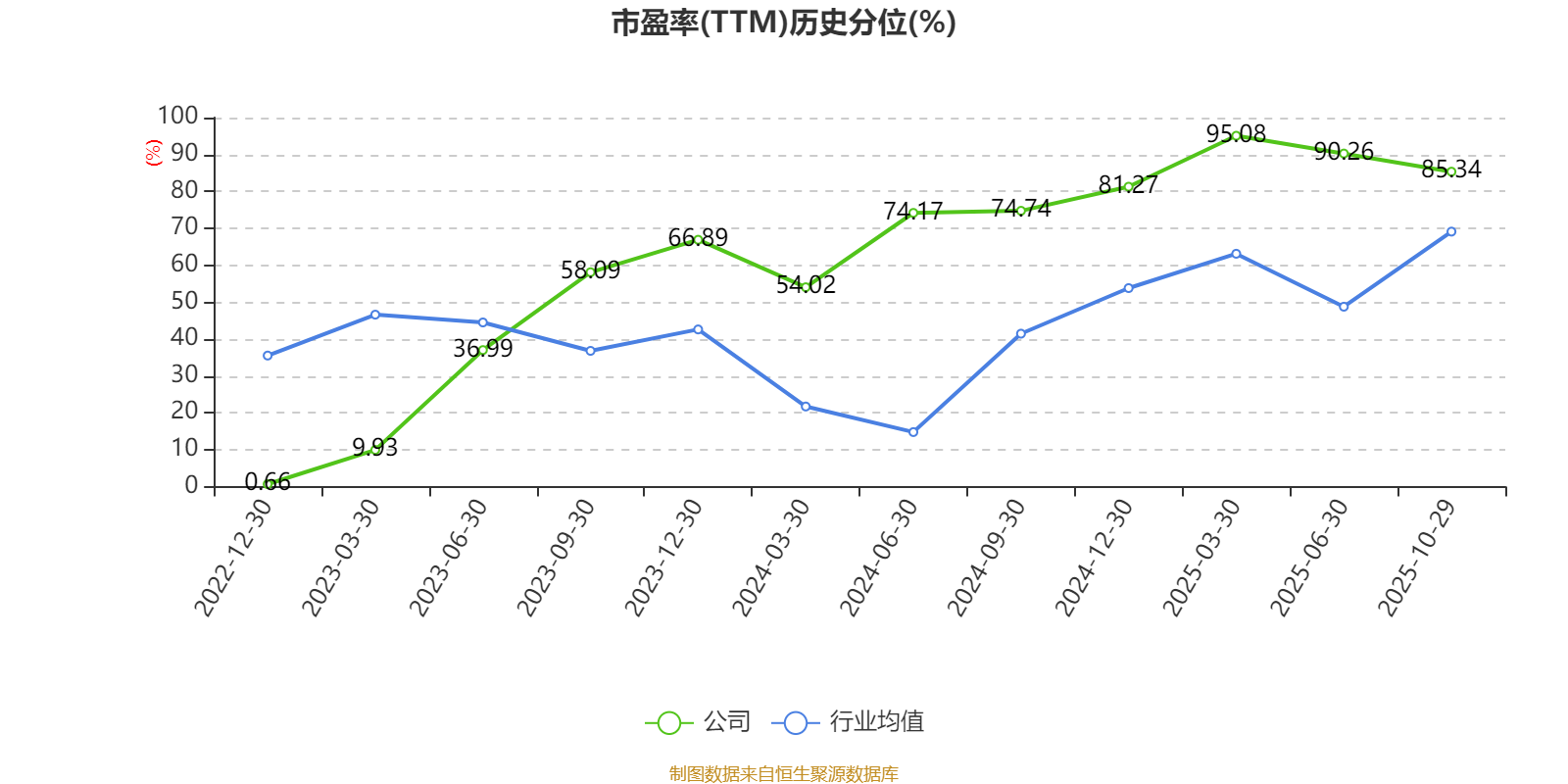 市盈率、市净率为负时,不显示当期分位数,会导致折线图中断。
