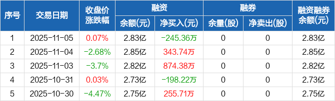 金沃股份:融资净偿还245.36万元,融资余额2.83亿元(11-05)
