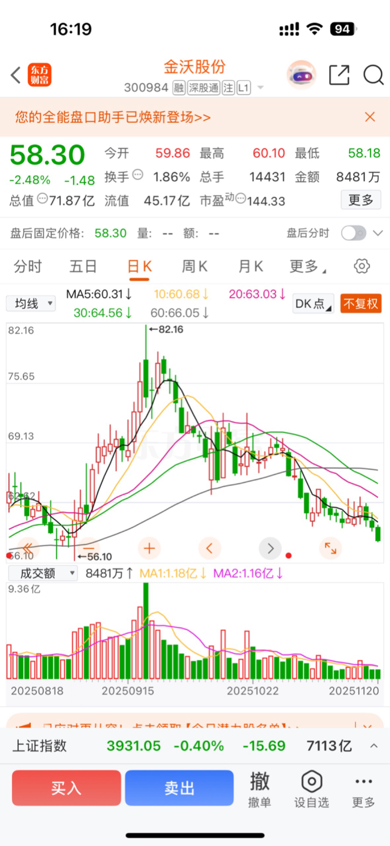 $金沃股份(SZ300984)$ 已经到7月份的平均股价水平!我持有不动!