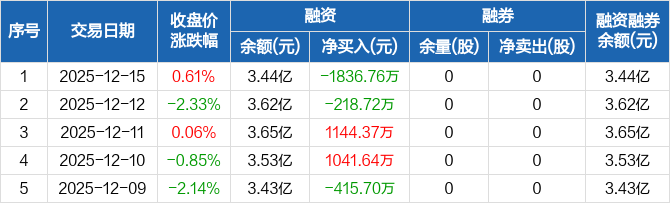 金沃股份:融资净偿还1836.76万元,融资余额3.44亿元(12-15)